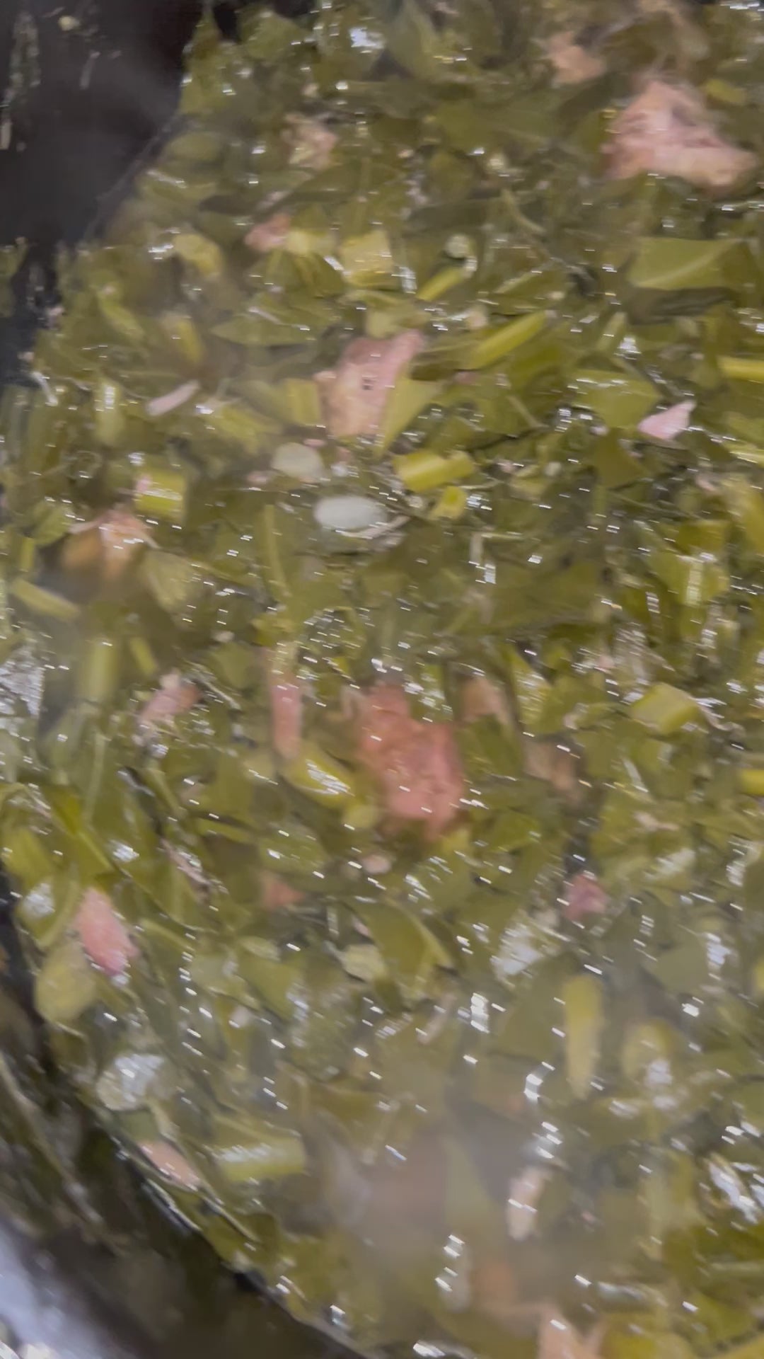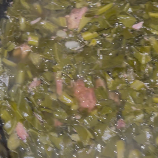 Slowed cooked Collard Greens with meat, seasoned well.